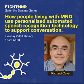 11.20 - 11.35AI Presentation 2 by Richard CaveTitle: How people living with MND use personalised automated speech recognition technology to support conversation.